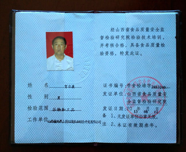• 山西小米(授權證書)